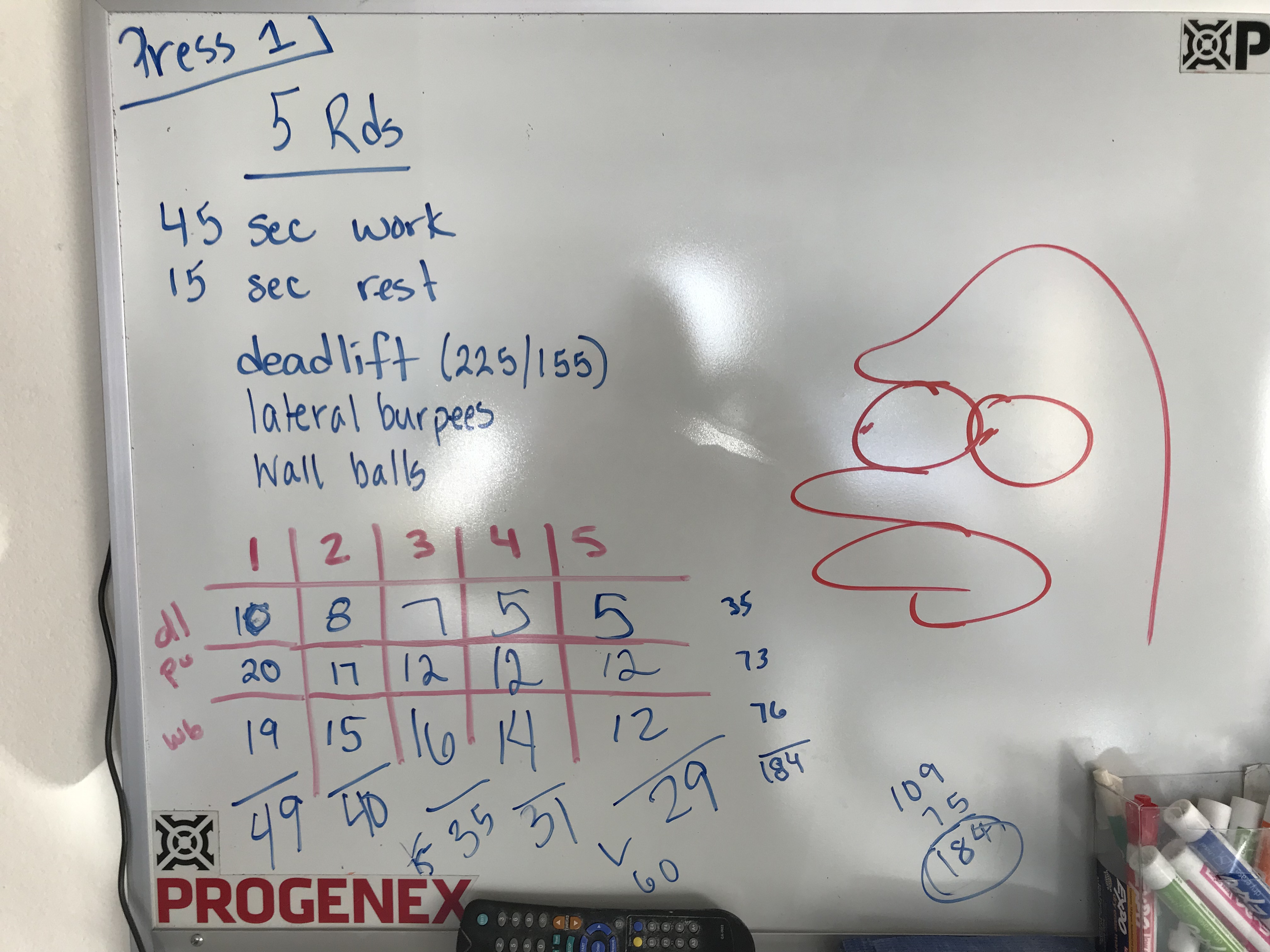 You are here: Home › Crossfit › 2019-04-18 ← 2019-04-17 2019-04-19 → 2019-04-18 WOD 5 rounds 45 seconds of work 15 seconds of rest Deadlifts (225/155) Lateral burpees Wall balls (20/14) Total: 184 (Substituted push-ups for burpees) Leave a Reply Cancel replyYour email address will not be published. Required fields are marked *Comment * Name * Email * Website Δ This site uses Akismet to reduce spam. Learn how your comment data is processed.